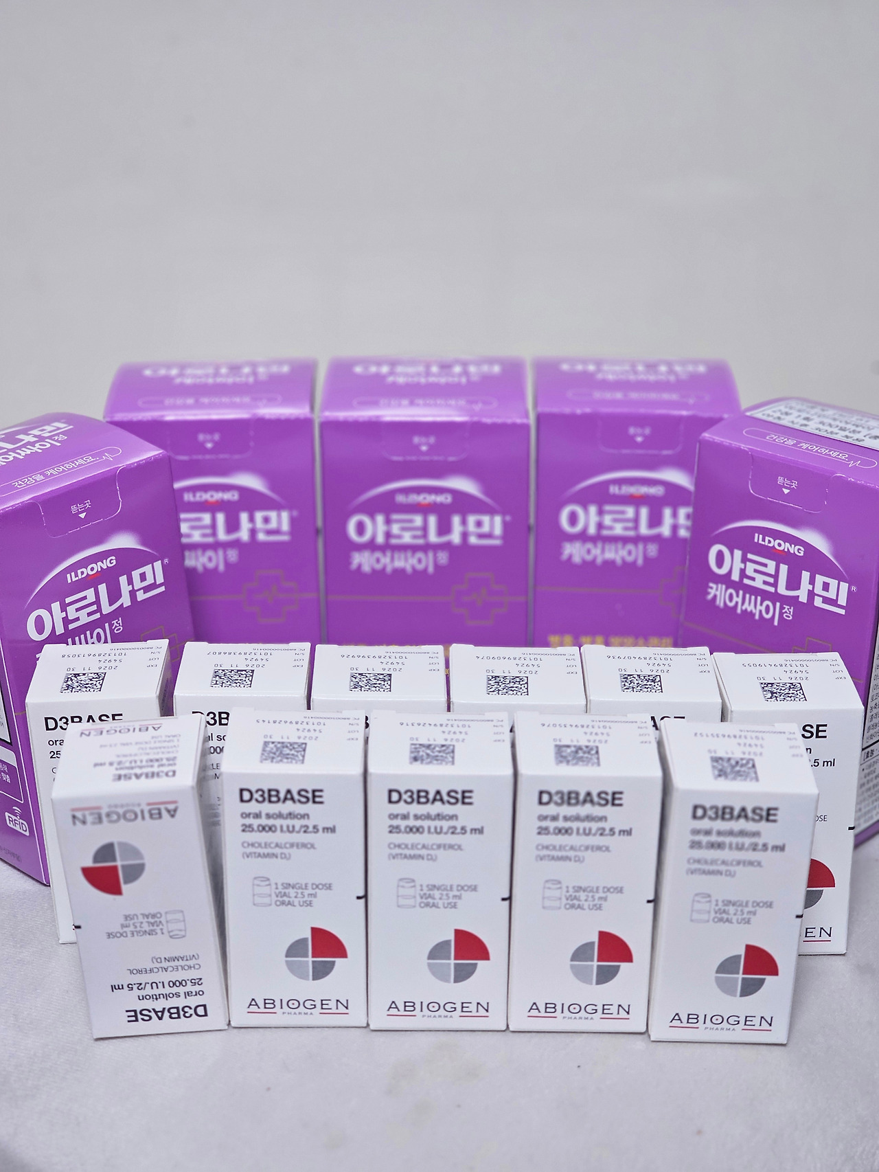 처방전이라고 해야 복합영양제로 셀레늄과 비타민, 아연 등의 성분을 고함량으로 한 '아로나민골드 케이싸이정'과 경구용 비타민D '디3베이스 2.5ml' 그리고 영양제를 먹을 때 위의 부담을 줄이기 위한 소화제 '속편엔 이중정'까지 1년 치를 한꺼번에 받는 겁니다. 이 중에서 소화제는 빼달라고 했습니다. 지난해 처방전 받을 때도 이 소화제는 뺐습니다. 굳이 하루에 영양제 2알 삼키는데 소화제까지 먹을 필요는 없을 거 같고 지난해부터 소화제 안 먹어도 잘 지내왔기에 이번에도 소화제는 안 먹기로 했습니다. 1년 치 영양제와 비타민제 가격이 366,200원 나왔습니다. 1년치라 쇼핑백 한가득입니다.