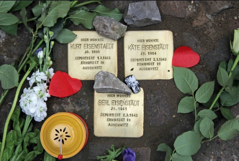 스톨퍼슈타인(stolpersteine) : 걸려 넘어지다(stolpern) + 돌(steine)의 합성어로 '걸림돌'이다. 독일에서 나치에게 희생된 사람들이 살았던 장소에 설치한 가로 세로 10cm의 작은 추모 동판이다. 건물벽에 붙여진 동판이 아니고 길바닥 보도블록 사이에 박아놓았다. "많은 사람들이 길을 걷다가 이것 때문에 발을 헛디디길 바란다. 그리고 잠시나마 기억해보길 바란다"라고 1992년부터 이 추모동판 설치를 하고 있는 독일의 예술가 귄터 뎀니히( gunter demnig)는 말했다. 베를린을 비롯해 독일 전역을 넘어 세계 20개국에 지금도 설치가 되고 있으며 2019년 7만 5천 개가 넘었다. 스톨퍼슈타인에는 희생자의 이름, 출생일, 사망일 등이 새겨져 있다.