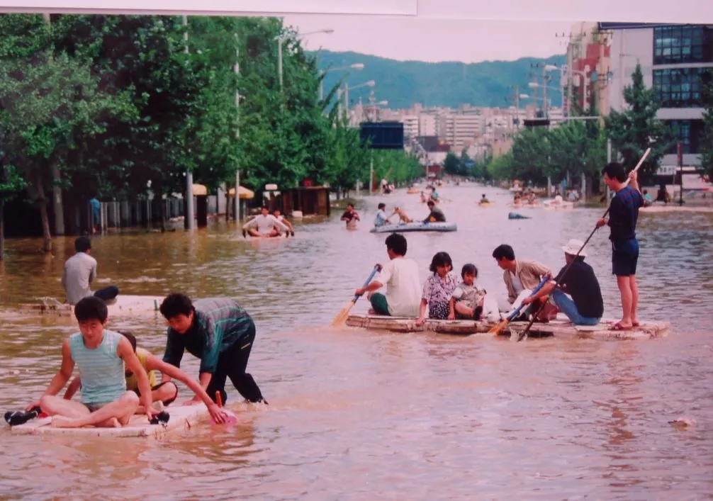 사실 한강의 수해하면 뼈아픈 상흔의 기억들이 서울시내 곳곳에 속속들이 박혀 있습니다. 아직도 기억나는 건 1984년 9월 망원동 물난리 사태입니다. 홍제천과 한강이 만나는 망원동은 상습 침수지역이긴 했지만 집중호우로 유수지 제방이 무너지면서 망원, 서교, 성산, 합정동 일대를 덮치며 일대를 모두 침수시키는 대참사가 발생했습니다. 1987년 7월과 1990년 9월에는 강동구 풍납동, 성내동 지역이 집중호우로 침수되어 주택가 전체가 물에 잠기는 통에 주민들이 합판으로 뗏목을 만들어 표류하는 모습도 생생합니다. 서울시내 상습 침수지역이 치수를 잘 한 관계로 지금은 서울에서 제일 부동산 값이 비싼 동네들이 되어 버렸네요. 상전벽해가 아닐 수 없습니다.
