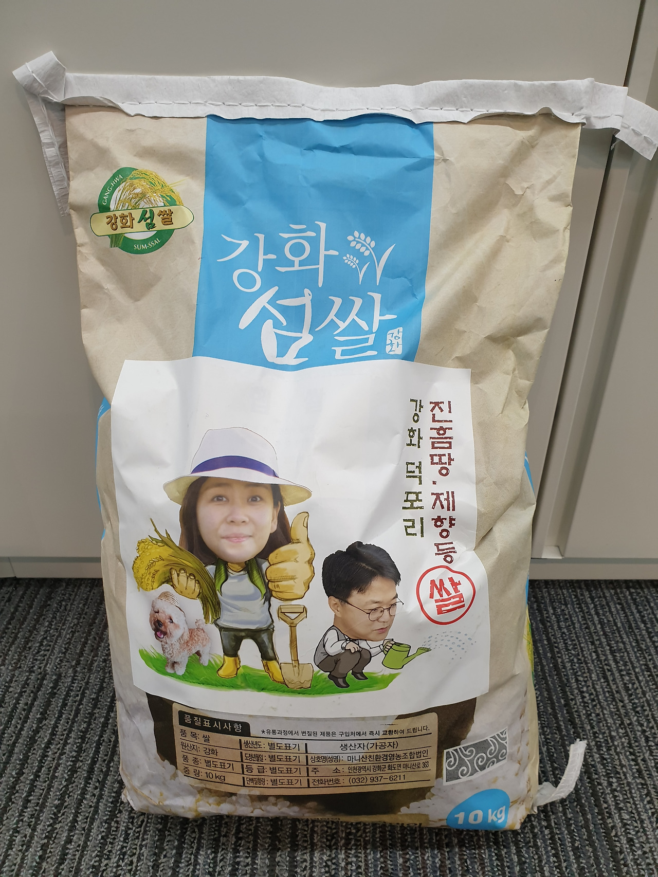 이 쌀은 아주 특별한 쌀입니다. 고향후배 부부가 강화도에서 지난해 농사지어 수확한 햇살을 도정해서 지난주에 직접 가지고 왔습니다. 40대 초반 부부인데 둘 다 내노라는 직업을 가지고 있습니다. 여자후배는 방송인이고 남편은 유명 사모펀드기업에서 펀드매니저를 합니다. 강화도 논은 100평 정도인데 주말 소일거리로 해보자고 해서 2년 정도 됐답니다. 사실 주말마다 가서 농사짓는 것은 아니고 위탁농사를 하는 거랍니다. 논농사야 매일 손이 가는 일이 아닌지라 모내기하고 벼를 벨 때 정도만 간다고 합니다. 그래도 한해 수확하면 10kg짜리 쌀 20포대 정도는 나온다고 합니다. 쌀포대도 두 부부의 사진을 넣고 집에서 키우는 강아지도 모델로 함께 출연하여 디자인을 직접 하고 자기들 이름을 넣어 쌀이름도 만들었습니다. 참 재미있게 사는 사랑스러운 부부입니다. 몇 개 안 되는 쌀포대 중에서 하나를 직접 들고 찾아와 준 것만 해도 그 정성이 대단합니다.