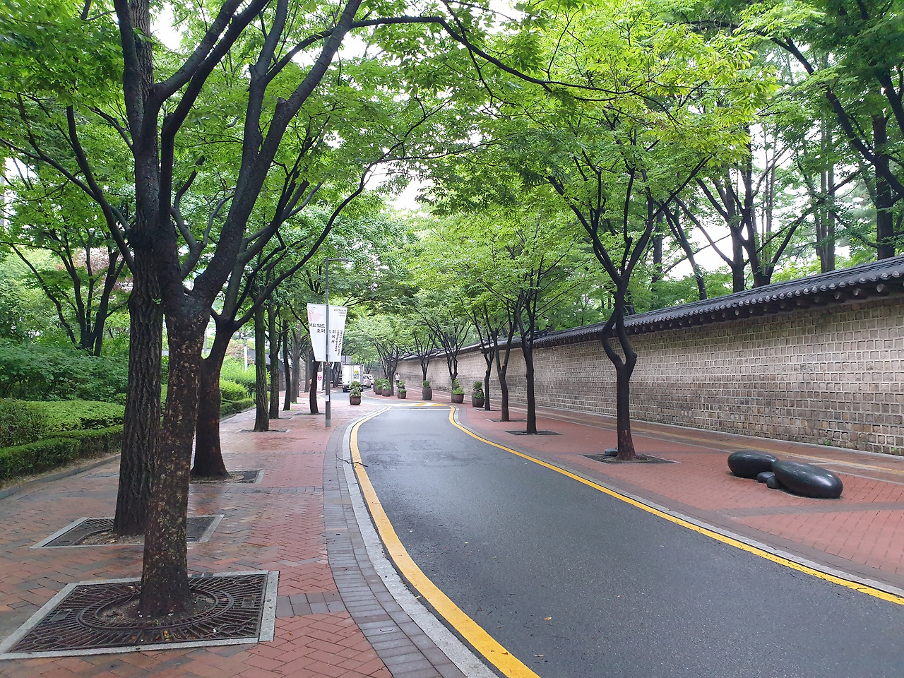 배롱나무꽃이 떠오르는 순간, 다음 전철역인 회기역에서 부랴부랴 내렸습니다. 보통은 경의중앙선을 타고 회기역을 지나 왕십리역에서 2호선으로 갈아타고 시청역까지 오는 경로를 주로 이용합니다. 회기역에서는 1호선으로 환승을 할 수 있고 역시 시청역까지 올 수 있습니다. 오늘 회기역에서 내린 이유는 1호선 시청역에서 플랫폼을 올라와 엘리베이터를 타면 덕수궁 대한문 바로 앞으로 올라오기 위해섭니다. 좌측으로 시청 광장의 아침 풍경이 보이고 대한문 앞 월대 공사가 마무리 작업을 끝내고 가림막을 걷어낸 모습도 보입니다. 비에 젖은 아침 풍광이 더 운치 있는 길이 바로 덕수궁 돌담길입니다.