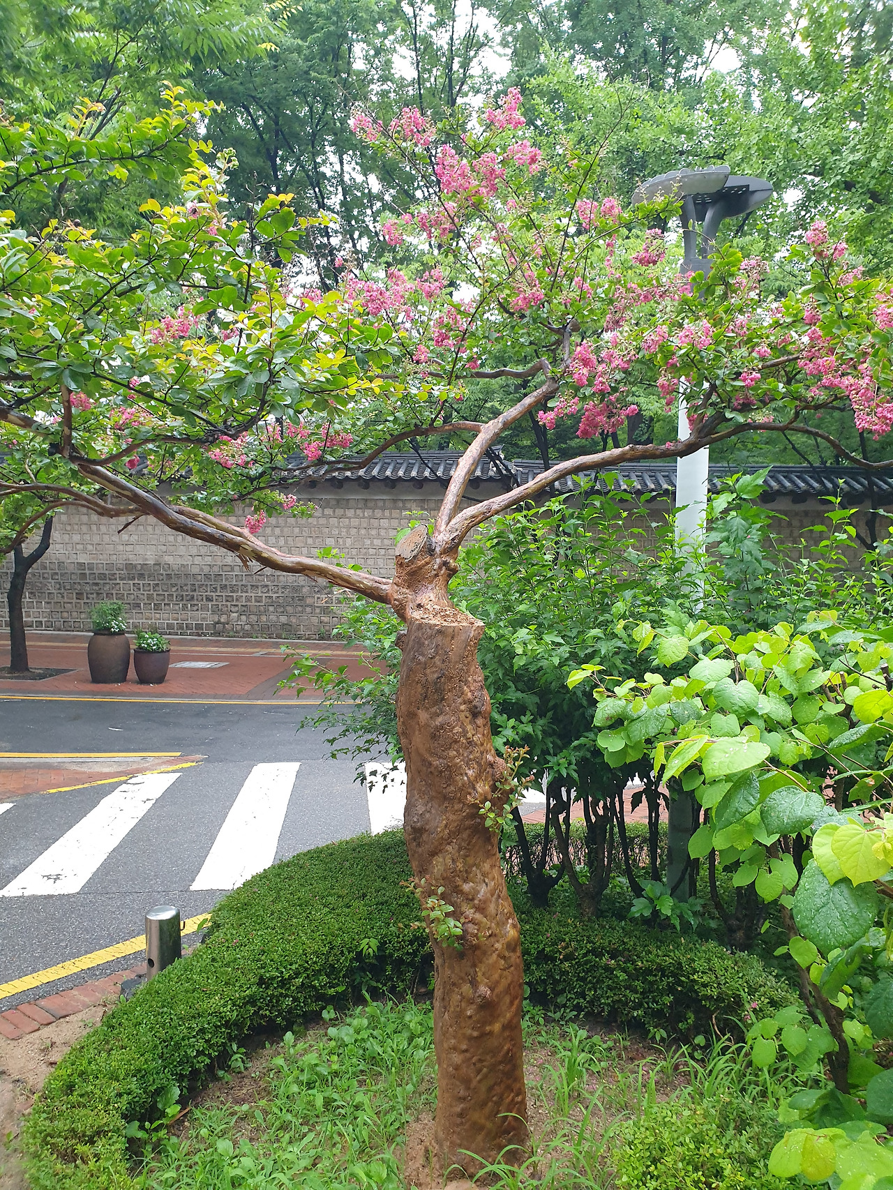 덕수궁 담벼락을 끼고 걸으면 왼편으로 시립미술관과 시청 서소문 제1청사가 있습니다. 출근길은 시청 제1청사 정원을 가로질러 건너옵니다. 그 정원 양쪽 끝에 배롱나무가 한 그루씩 심어져 있기 때문입니다.