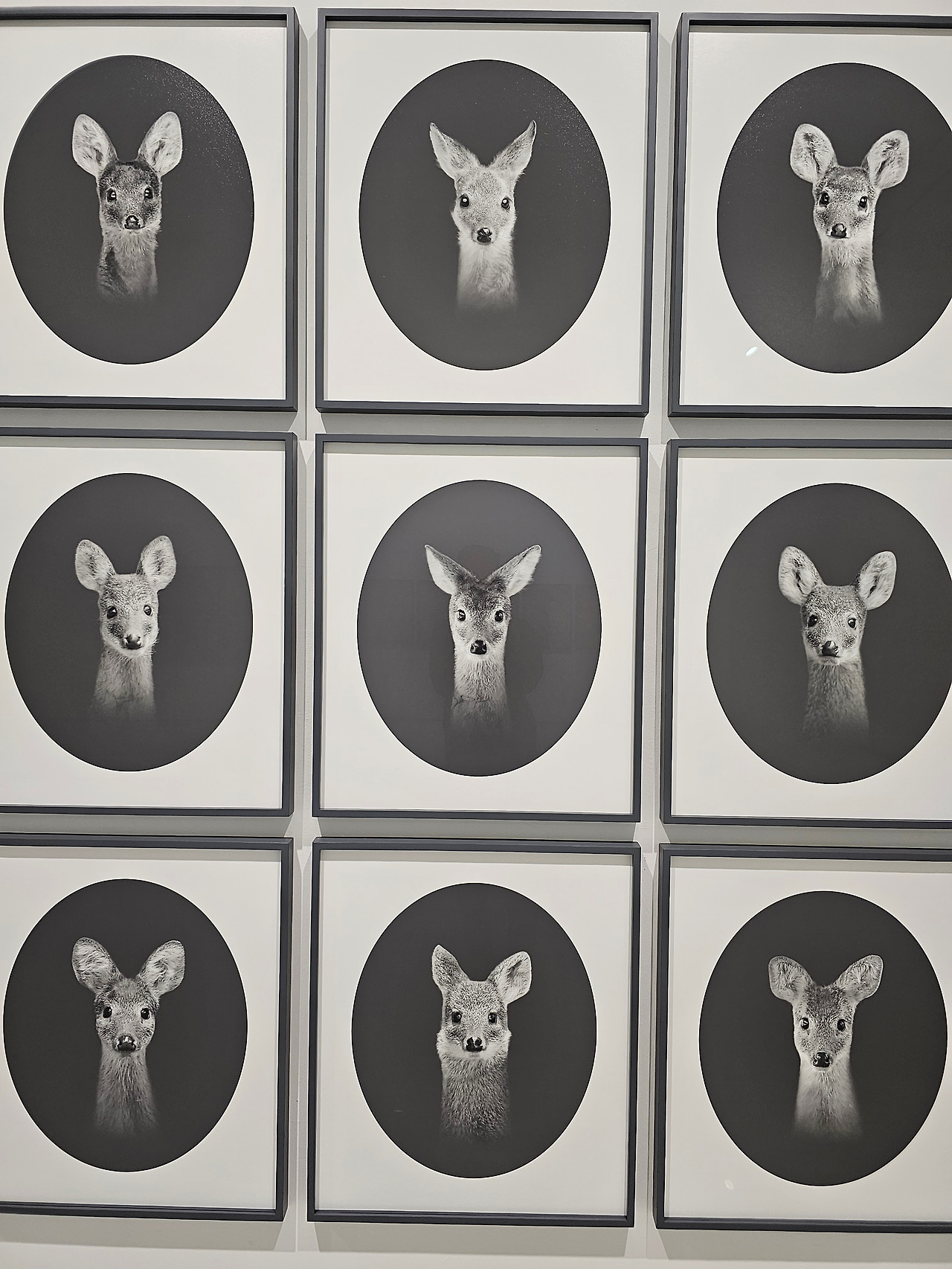 세상을 통찰하는 시선을 엿볼 수 있다는 것 하나만으로도 갤러리에 들어가 봐야 할 이유가 생겼다. 매일 오며 가며 각각의 고라니가 어떻게 다른지 들여다보기로 했다. 저 사진작품 속에는 작가의 감성을 깨워준 '초코'라는 녀석의 얼굴도 분명히 있을 텐데 알아맞혀 보기로 했다. 나중에 작가에게 물어봐야지, 어떤 사진이 '초코 얼굴' 인지.