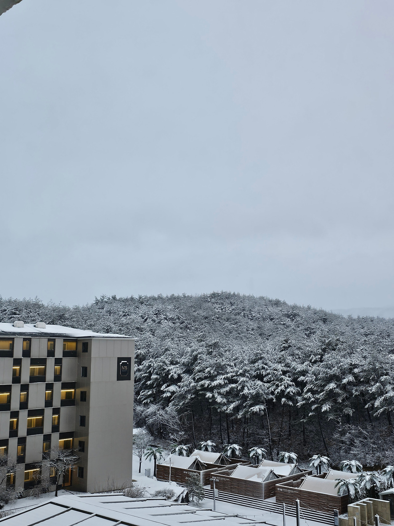 일요일인 어제 서울로 돌아오면서 또다시 설국의 풍광을 마주했다가 눈이 하나도 쌓이지 않아 황량한 풍경으로 다시 들어왔습니다. 오랜만에 만난 친구들과의 술잔과 대화가 밤새 리조트 방 안에서 펼쳐지고 장문밖으로 펼쳐진 설국이 무대배경으로 펼쳐져 보이는 무릉도원의 풍경 속에 들어갔다 나온 기분입니다.
