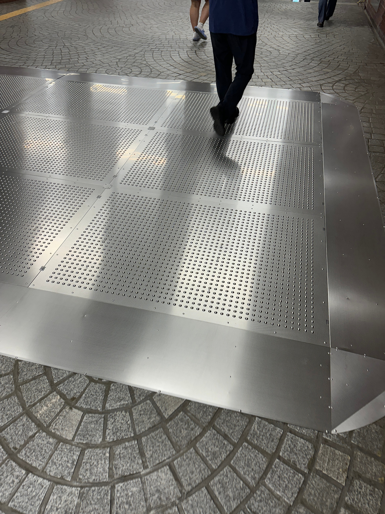 어제부터 시청역 2호선 교통카드 찍고 나오는 출구 앞에 하얀 금속판이 깔렸다. 밟고 지나갈 수밖에 없다. 밟으면 짜르르~~ 짜르르~~ 소리가 난다. 다른 지하철역에도 깔렸나? 갑자기 이게 왜 깔린 거지? 이게 뭐지?