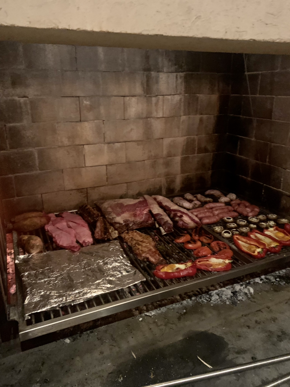 한국에선 200 그램에서 250그램의 스테이크 형식으로 소고기를 먹는 것 익숙한데, 이곳에선 어림없다. 최소 2킬로가 넘는 고깃 덩어리를 통째로 익히기 시작한다. 굽는데 시간이 오래 걸리는 갈비 부위와, 초리소를 먼저 그릴에 올리기 시작한다. 그리고 한시간 정도가 지나면 립아이와 실루안 부위를 그릴에 올려 서서히 굽기 시작한다. 마지막은 엔뜨라냐라는 우리로 치면 '토싯살' 부위를 그릴에 올려 굽는다.