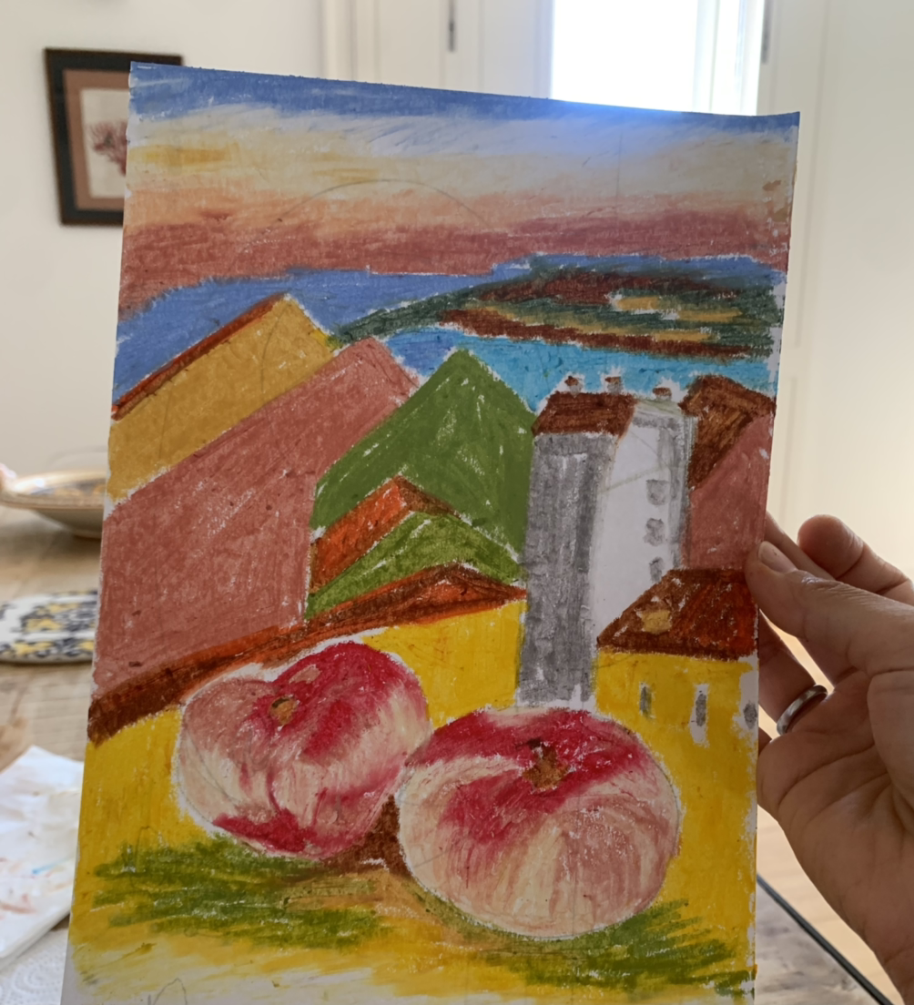 그녀가 준 퇴사 선물이니 고맙게 받았다. 백수가 되면 자유시간이 넘칠 테니, 그리고 퇴사 후 유럽으로 이주를 할 예정이었기에, '그래 유럽의 아름다운 풍경을 한 번쯤은 그려 보지 뭐'라는 생각을 하며 말이다. 그림을 그리는 재주는 없기에 지난 1년 동안 2번 정도 이 크레용으로 그림을 그려보았다. 정말 그 친구의 말대로 곰손도 스윽스윽 여러 가지 색을 교차하며 칠해주면, 내가 아닌 다른 솜씨 좋은 누군가가 그린 것처럼 꽤 그럴듯한 그림들이 완성되었다.