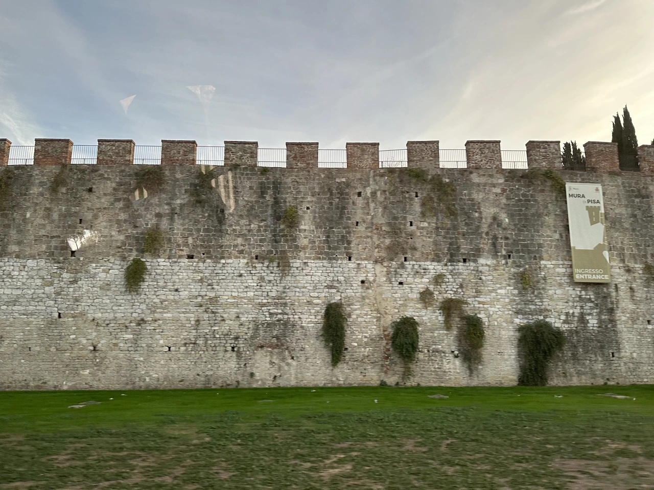 피사에 도착했을 때는 오후 5시에 조금 못 미쳐 있었다. 하루 중 가장 부산한 때가 지나고 지평선 가까이 내려앉은 해를 따라 공기도 차분히 가라앉는 시간이다. 차에서 내리니 굳건한 성벽이 눈앞에 나타났다. 성벽 위를 걸을 수 있다는 글을 어디선가 읽은 기억이 얼핏 나는 것 같다. 이런 늦가을 늦은 오후의 하늘 아래서라면 얼마든지 걸을 수 있겠다고 생각하며 성벽 안 쪽을 향해 발걸음을 옮겼다.