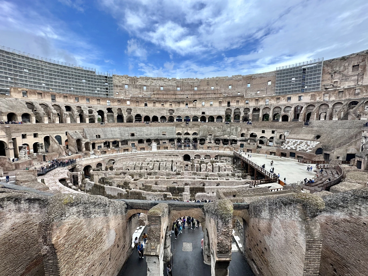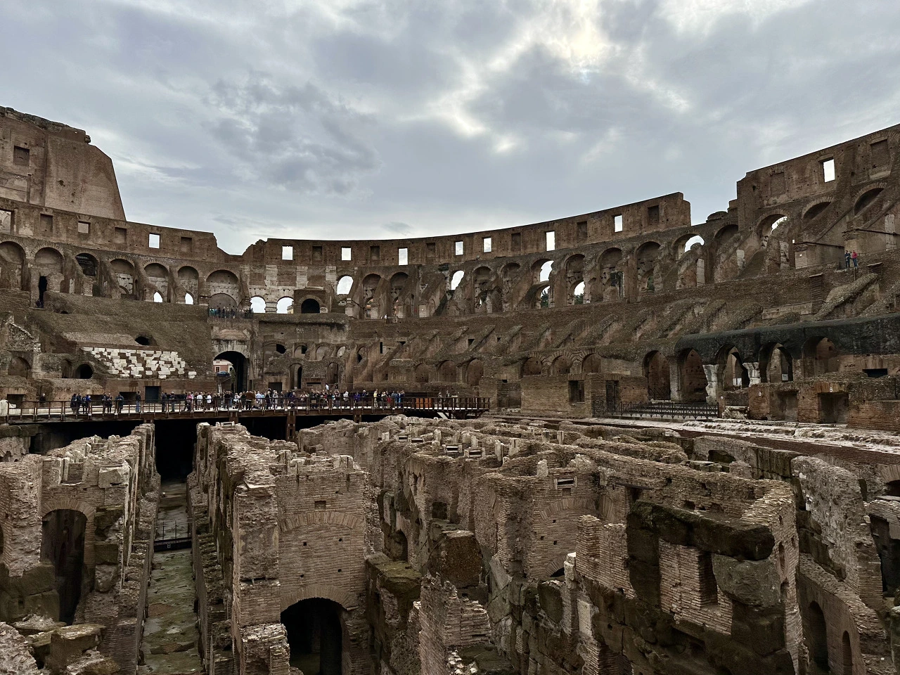 거대한 원형 경기장으로만 알고 있던 콜로세움은 상상을 초월할 만큼 고도로 발달한 곳이었다. 지하는 수많은 통로로 연결되어 있었고, 지상으로 향하는 엘리베이터도 있었다. 뿐만 아니라 지하에 있는 동물을 경기장 위로 순식간에 올려놓을 수 있는 장치까지 있었다고 하니, 영화 <글레이에이터>에서 호랑이가 튀어나오는 장면은 현실 고증이었던 것이다. 구석구석을 가리키며 열성적으로 설명해 주는 까밀라 덕에 궂은 날씨는 잊고 흥미진진한 옛날이야기를 듣는 기분이 되었다.