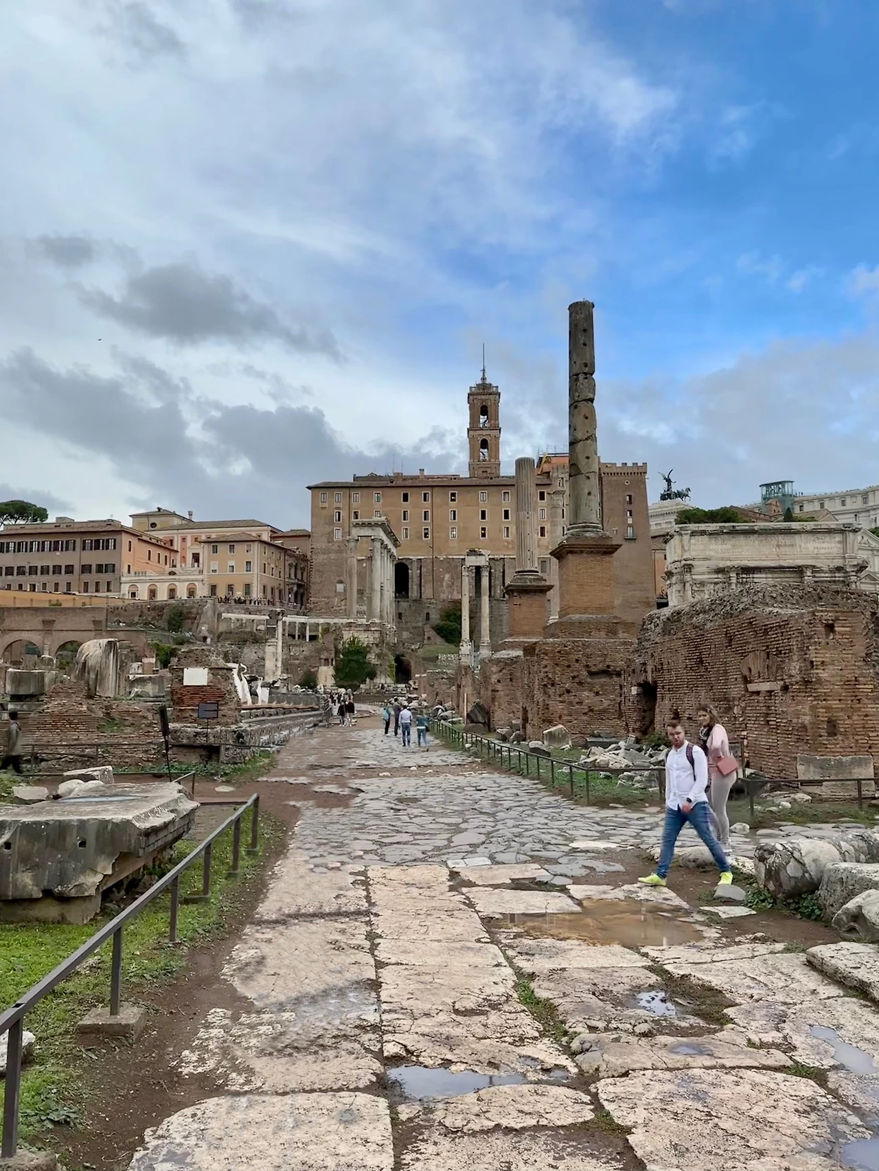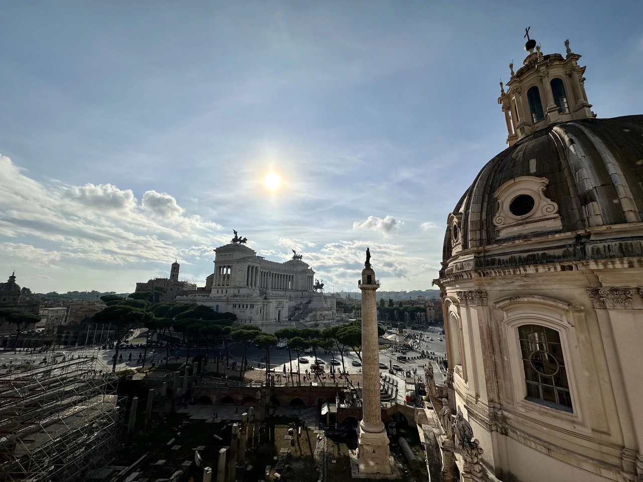 가장 먼저 눈에 들어온 건 세월의 흔적이 고스란히 녹아있는 임페리얼 포럼의 잔해와 그 옆에 세워진 트라야누스 원주 위에서 로마를 굽어보는 성 베드로 상이었다. 멀리 보이는 베네치아 광장의 한가운데에는 시린 공기와 잘 어울리는 순백의 조국의 제국이 쨍한 태양 아래 빛나고 있었다.