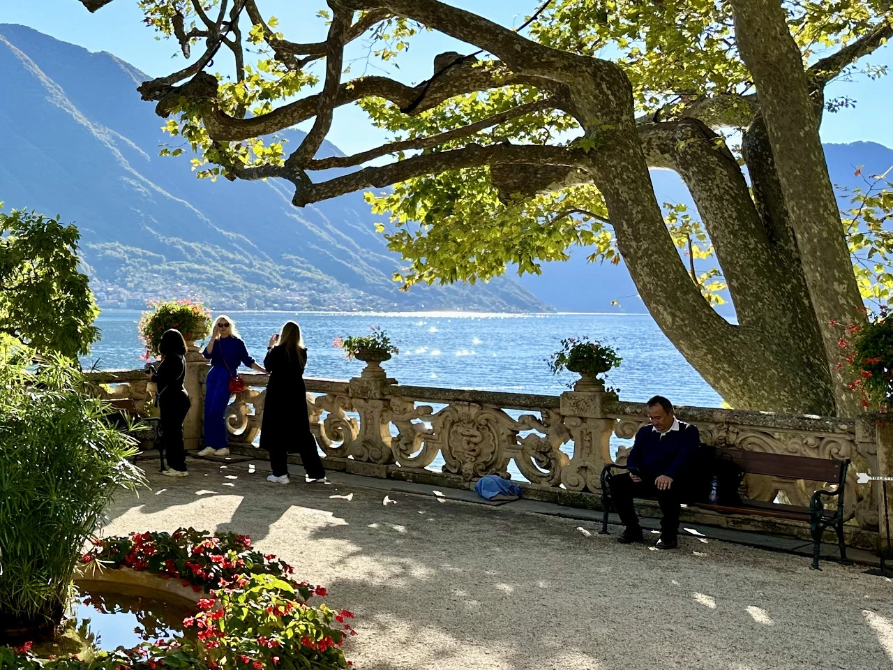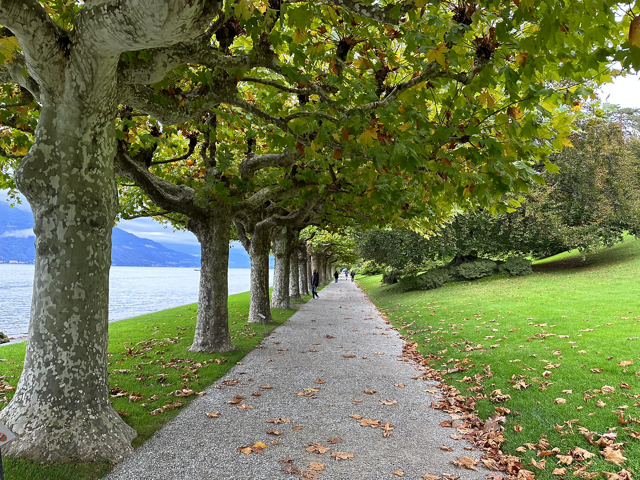 조금 더 걸으니 우리의 목적지였던 멜지 데릴 빌라(Villa Melzi D'Eril)가 나타났다. 전날 들렀던 빌라가 아기자기한 정원 같았다면 이곳은 시원하게 펼쳐진 숲의 느낌이었다. 대리석 장식이나 색색깔로 가꿔진 꽃은 없었지만, 위로 쭉쭉 뻗은 나무들과 그 옆에 펼쳐진 호수를 보고 있으니 마음이 편하게 가라앉았다.