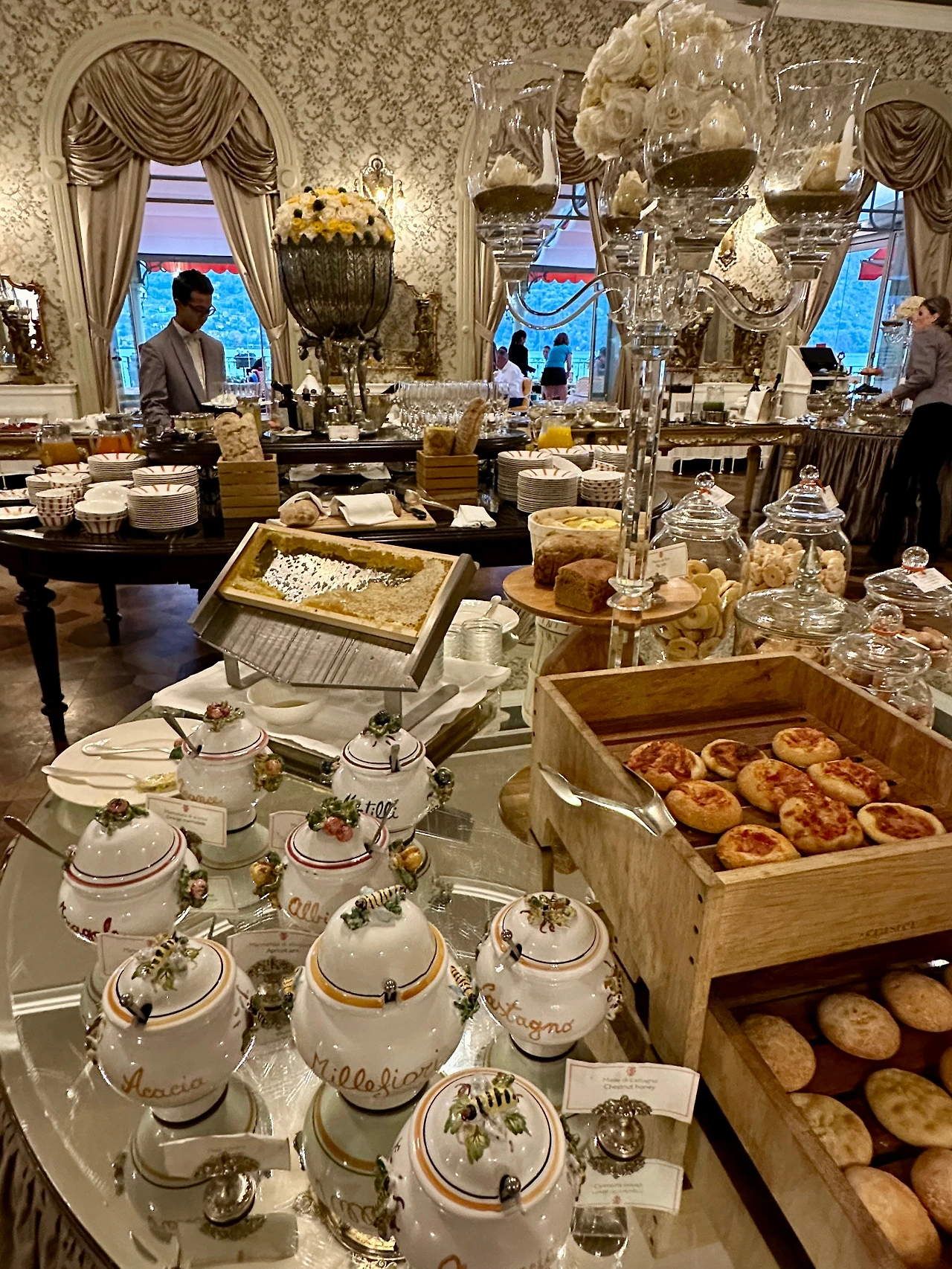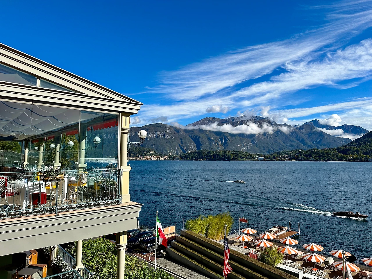 코모호수에서의 둘째 날은 아침식사로 열었다. 조식 뷔페가 너무나 아름답게 차려져 있어 이러다간 정말로 귀족이 된 것 같은 착각에 빠져버릴 것 같다는 생각을 했다. 하지만 창밖으로 보이는 먹구름이 이내 정신을 차리게 해 주었다. 식사를 하는 순간에도 구름이 멀리서 자꾸 모여드는 것만 같다. 심상치 않은 날씨를 받아들이고 이날의 목적지인 벨라지오를 가기 위해 페리에 탑승했다.