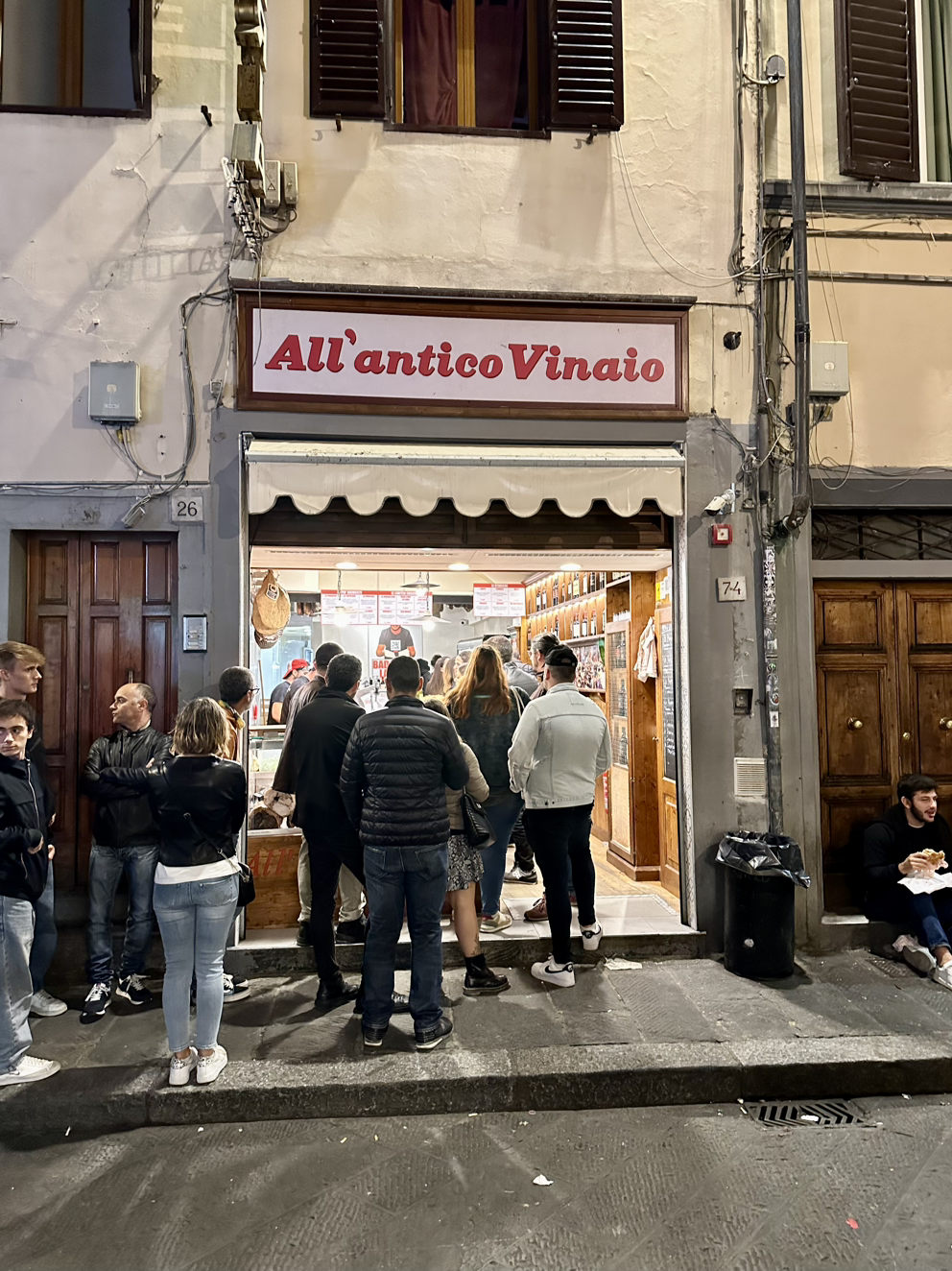 계획에 없던 관광으로 시간이 지체되었지만 샌드위치 가게를 찾는 건 어렵지 않았다. 가게 주변은 줄 세우는 직원까지 동원될 정도로 북적이고 있었기 때문이다. 줄은 다행히도 빨리 줄어들었다. 우리는 가게에서 추천받은 샌드위치 2개를 주문해서 근처의 베키오 다리로 갔다.