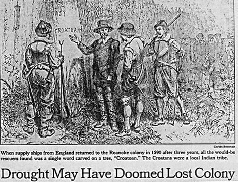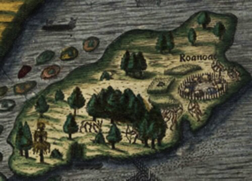 1587년 존 화이트가 이끄는 120여 명의 남녀가 두 번째로 로어노크에 도착해 식민지 개척을 시도했다. 화이트는 성과를 보고하고 보급물자를 가져오기 위해서 다시 영국으로 돌아갔는데, 이후 영국과 에스파냐의 전쟁이 계속되어 화이트는 3년간 영국에서 꼼짝없이 기다리다가 1590년이 돼서야 로어노크 섬으로 돌아갈 수 있었다. 화이트가 로어노크에 돌아왔을 때는 나무기둥에 ‘크로아토안(Croatoan)’이라고 적힌 문구만 남아있었고 100여명의 영국 사람들은 홀연히 사라졌다.