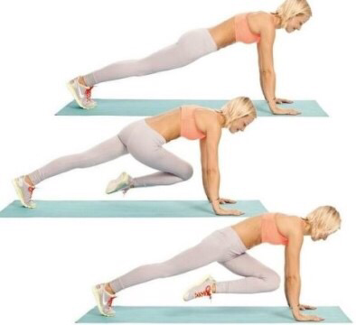 3. 엎드려서 산을 등반하듯이 양발을 교차하는 자세를 반복한다.