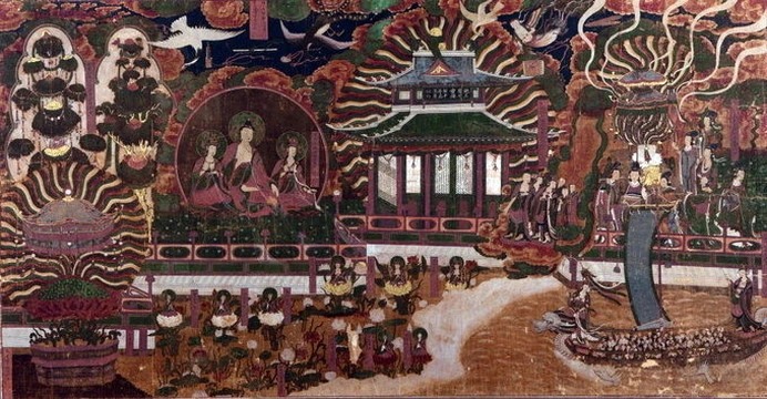 불교에는 우주의 모든 방위에 부처가 상주하고 있는 정토(極樂)가 있는데, 아미타불의 서방극락정토와 미륵정토의 정토(=극락) 관념은 극락(천당)과 지옥의 사상을 완성시켰다.