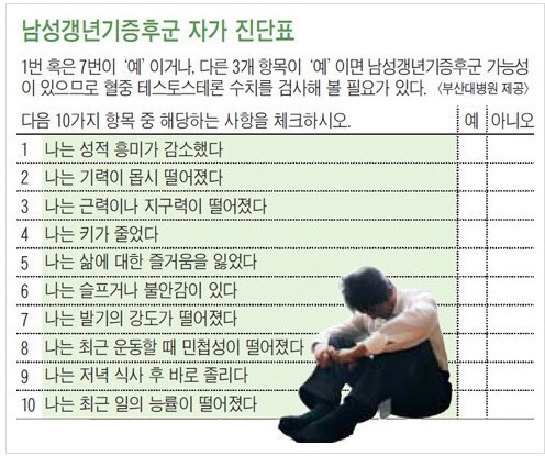 흔히 갱년기는 여자들에게만 오는 것으로 생각하지만, 남자들도 나이가 들고 호르몬 분비에 변화가 생기면서 갱년기 증후군을 겪게 된다.