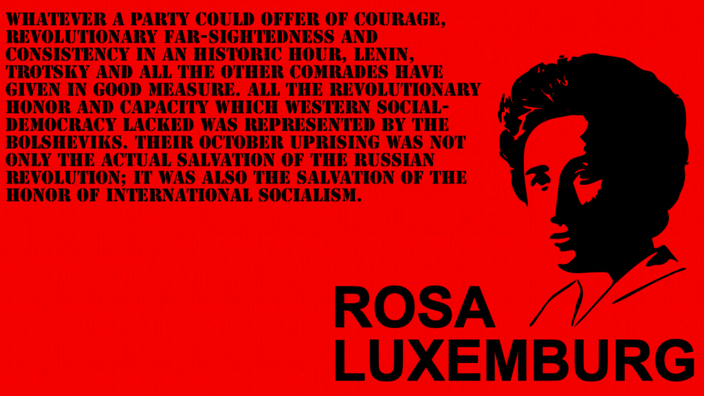 유럽 좌파 진영에서도 그는 소수자였다. 그럼에도 그는 소수의 전위였다. 러시아 혁명 후 정권을 잡은 한때의 동료 레닌과 볼셰비키를 격렬히 비판했다. 혁명적 마르크스주의자이자 국제사회주의 운동 세력 내에서 레닌과 맞먹는 위상을 가졌던 그였다. 그는 레닌과 트로츠키가 내적 절망과 모순을 극복하고 혁명에 성공한 것을 높이 평가했지만, 인민의 자발성과 창발성을 무시했다는 이유로 10월 혁명을 강하게 비판했다.