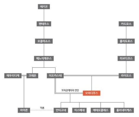 "그는 지금 두 눈이 멀쩡하지만 장님이 될 것이고, 지금 부자지만 거지가 될 것이며, 지팡이로 땅을 더듬으면서 낯선 나라를 헤맬 것입니다. 그리고 그는 같이 살고 있는 자식들에게 형제이자 아버지임을 증명하게 될 것입니다. 그리고 그를 낳아 준 어머니에게는 아버지의 잠자리를 물려받은 남편인 동시에 아들이며 자신의 아버지를 피를 흘리게 한 자임이 증명될 것입니다." - 테이레시아스-