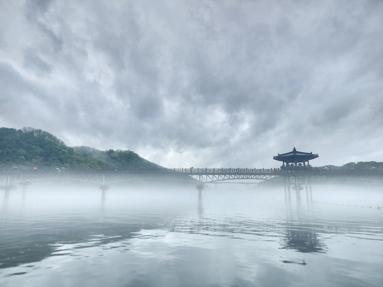 숙박 근처인 월영교에 주차하고 우린 비 오는 월영교를 걸었다. 비가 와서 물안개가 강을 하얗게 감싸 안았다. 물안개 가득한 월영교는 신비로웠다. 영화 같은 풍경이라고 그에게 말했다. 우린 영화 속 주인공처럼 손을 잡고 월영교를 걷다 다시 돌아와 돛단배를 탔다. 안개는 더 짙어졌고 빗방울 소리도 커졌다. 모터를 멈추고 잠시 배를 세워 물속으로 추락하는 빗소리에 빠져들었다. 빗방울이 강 표면에 닿아 흰 포말을 만들며 사라졌다. 우린 안갯속에 갇혀 입을 맞췄다. 남들이 보면 불륜이라며 깔깔거렸다. 안개 때문이었을까? 28년 산 남자와 다시 사랑에 빠졌다.