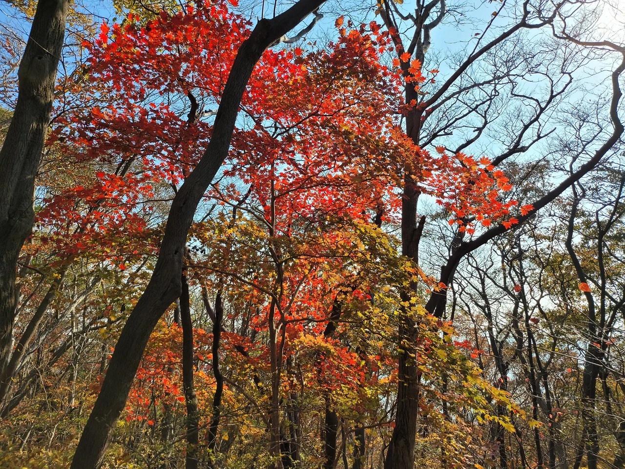 가을산의 11월은 절정으로 뜨겁다. 산을 오르다 눈앞이 환해 고개 돌리면 여지없이 붉은 단풍이 우릴 불러 세웠다. "제발, 나 좀 봐 달라"는 앙탈에 도저히 못 본 척 지나칠 수 없다. 미치도록 예쁘다며 몇 번이나 그에게 털어놓았다. 마치 고백이라도 하듯이 말이다. 태양도 저토록 붉지 않겠다며 저건 뜨거운 핏빛일 거라며 그에게 돌아서며 말했다. 그도 빙긋 웃으며 나를 안았다.