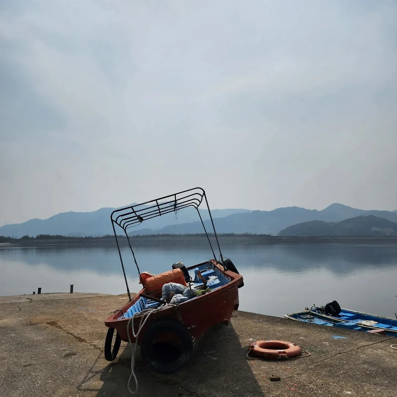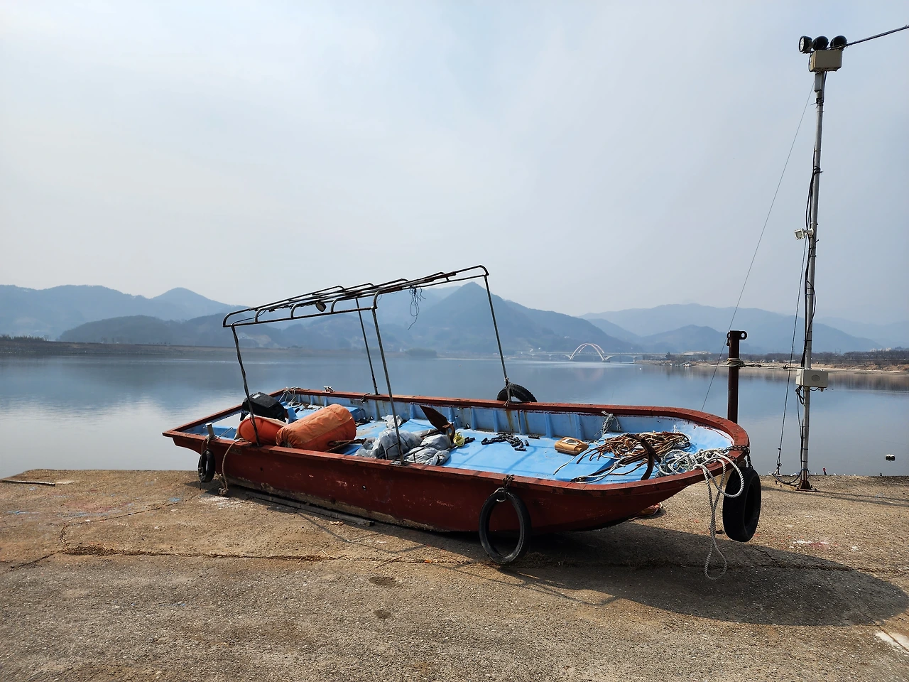 '퇴역 군인처럼 할 일을 놓아버린 고깃배가 망중한을 즐기고 있는지? 고독에 빠졌는지?'