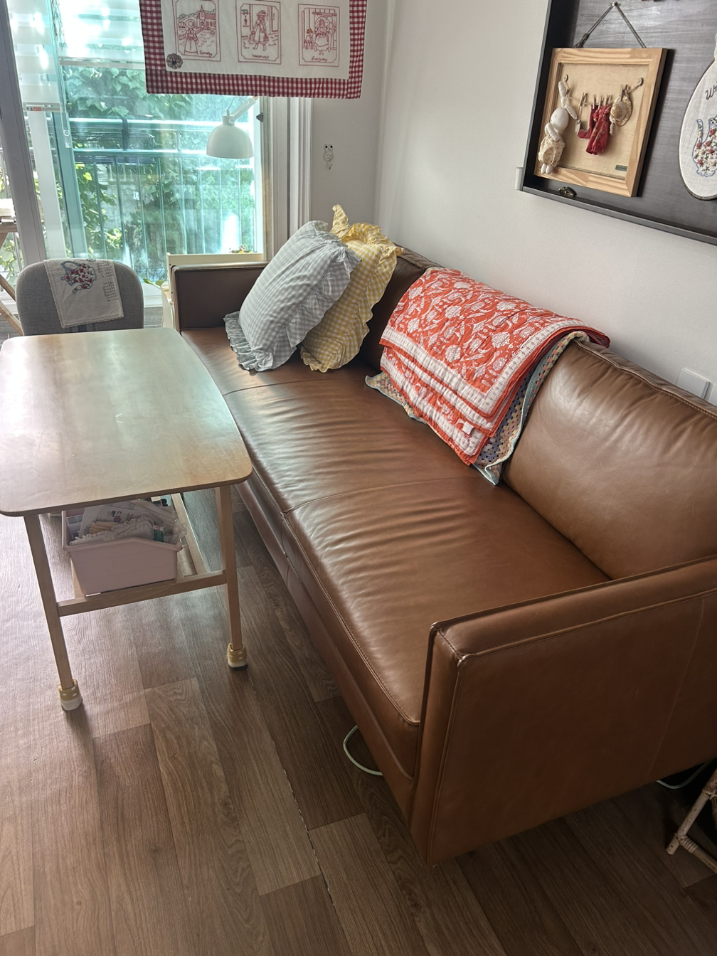 가을바람이 이젠 제법 가을티가 확연히 나는지 반바지를 입은 다리에 소름이 돋아서 얼른 종아리를 덮는 꽃무늬 바지로 갈아입고는 내가 욕망하느라 (행복하고 싶어서) 사들였던 물건들을 정리하며 하루를 시작합니다. 작년에 무려 할부를 6개월이나 나눠 결재를 해야 했던 나의 최고의 사치품이자 반려소파는 천연가죽에 때가 묻는 게 싫어서 얼마 전까지 소파패드를 꼭 깔아 두고 식구들을 앉게 했는데 이젠 그 불편한 소파베드를 과감히 빼고 맨 얼굴의 소파와 마주하고 있습니다.