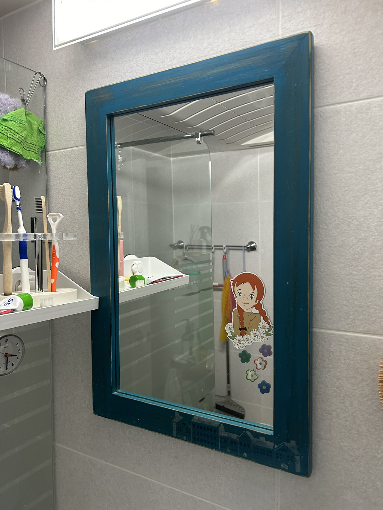 거울 속에 아빠가 있습니다. 나는 아빠를 너무 많이 닮았거든요. 내가 있어야 하는데 거울에 아빠가 비칩니다.