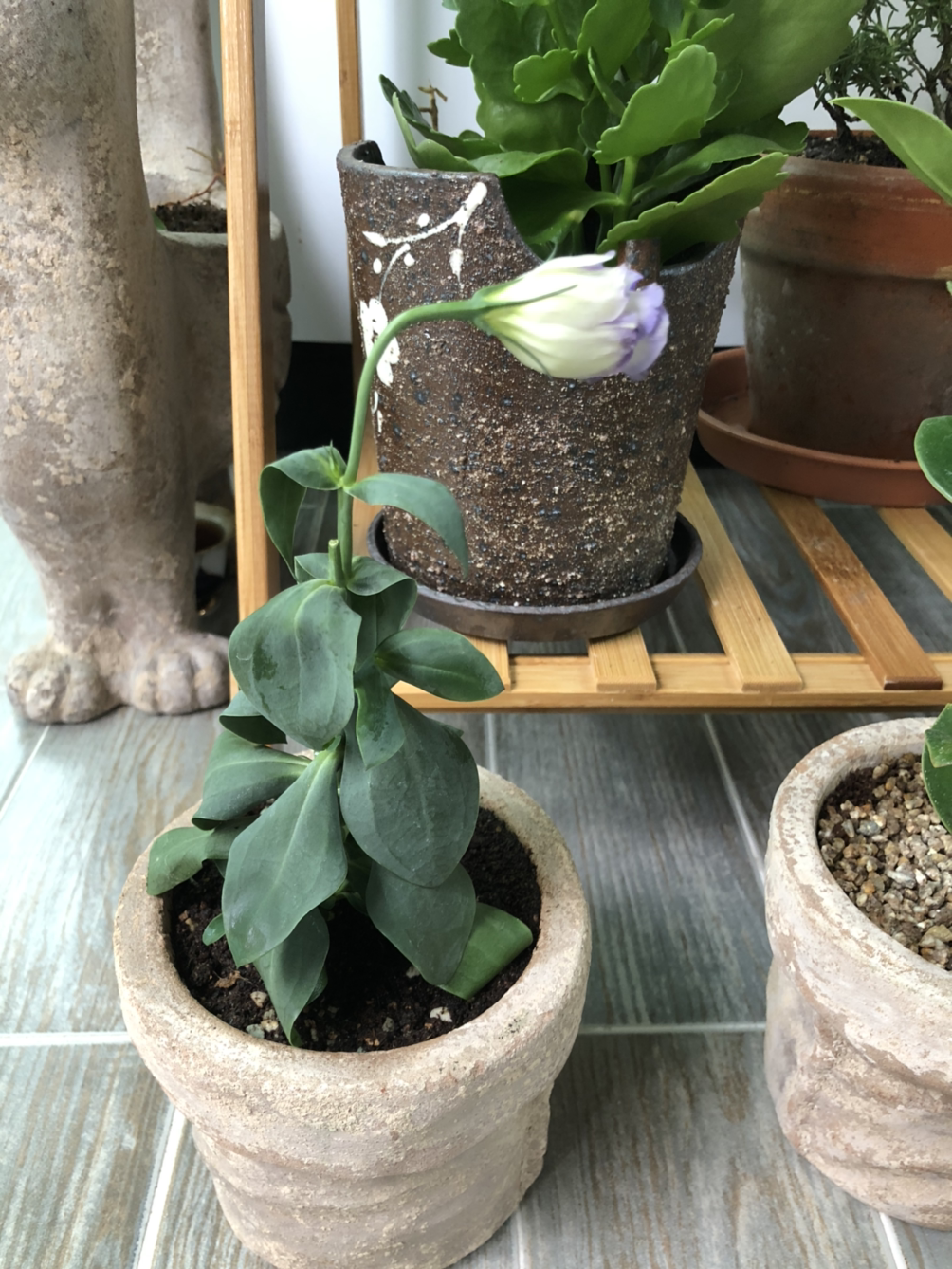 화원 사장님과 상의후에 꽃대를 과감히 자르고 거실 안으로 들여 흙을 말리는 중 입니다. 사나흘에 한번씩 통풍 잘 되는 곳에 내어뒀다가 다시 흙이 바짝 마르면 물을 주며 살리는 연습을 해봐야겠어요. 리시안셔스 밑둥에 새잎이 돋고 있어서 그나마 희망적이긴 했습니다. 호야는 뿌리만 남았어도 포기하지 않으려고요.
