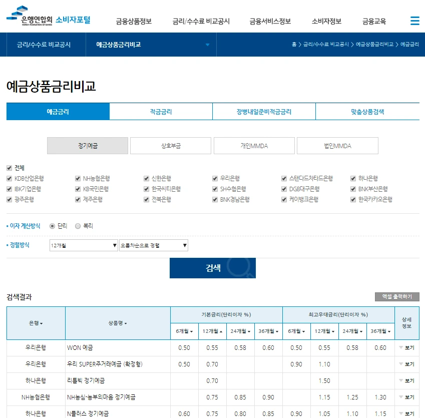 은행연합회에서는 은행권에서 고시하는 예금, 적금 금리를 고시한다. 그럼에도 발품을 팔아야 하는 이유는, 고시이율과, 내 집 근처에서 특판으로 제공하는 금리가 다르기 때문이다. 1 금융권(은행) 금리 비교