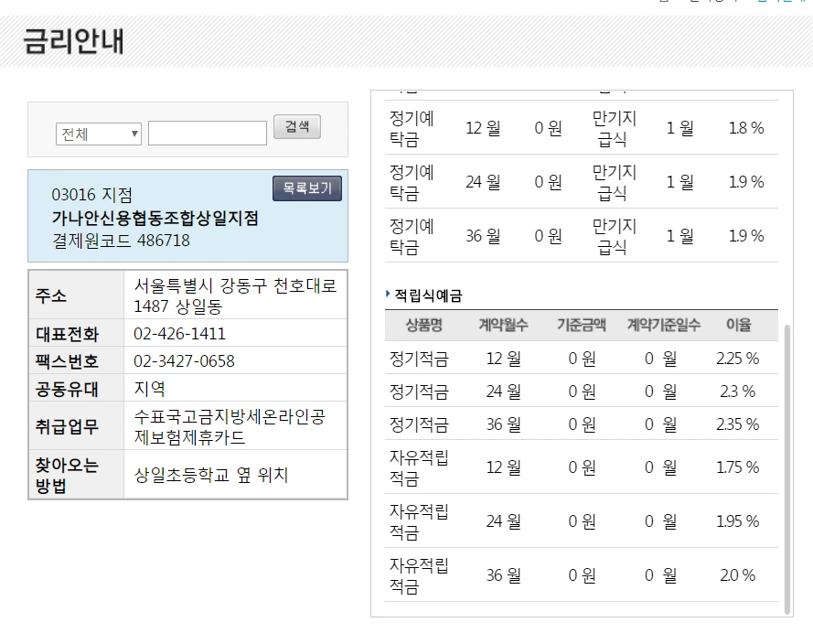 신용협동조합 역시 지점별로 고시된 금리를 홈페이지에서 공시하고 있다. 예탁금, 적금 등 형태가 다양하다. 조합원 예탁금으로 비과세 혜택도 누릴 수 있다. 널널한 시간에 가면, 직원으로부터 아주 촘촘한 설명을 들을 수 있다. 인터넷에서 어렵게, 파편화된 정보를 얻지 말고, 근처에 있는 신협 지점에 찾아가서 설명을 구하자. 신협 지역별 고시금리