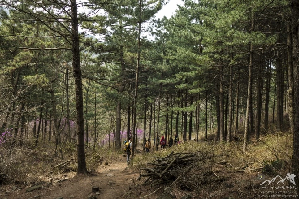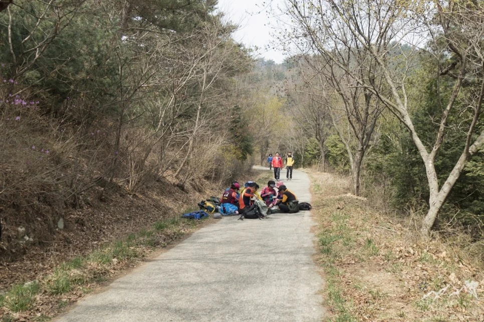 노랑선따라 올라갔어야 하는데 산악회에서 알려준 임도 따라 빙빙 돌아서 재미없다. 에잉~