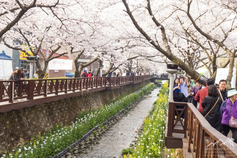 버스를 타고 여좌천 입구까지 조금 이동하였다. 내려서 구경하고 두시간 반 동안 구경하고 9시반까지 오라네~