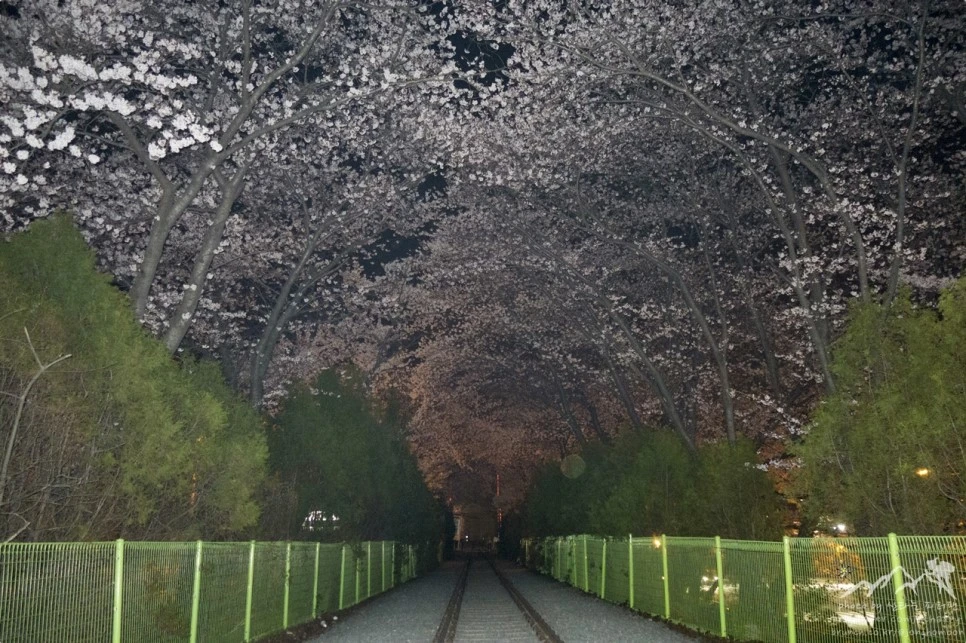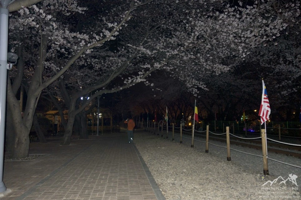 벚꽃에 조명빛이 비추면 볼만하겠다..