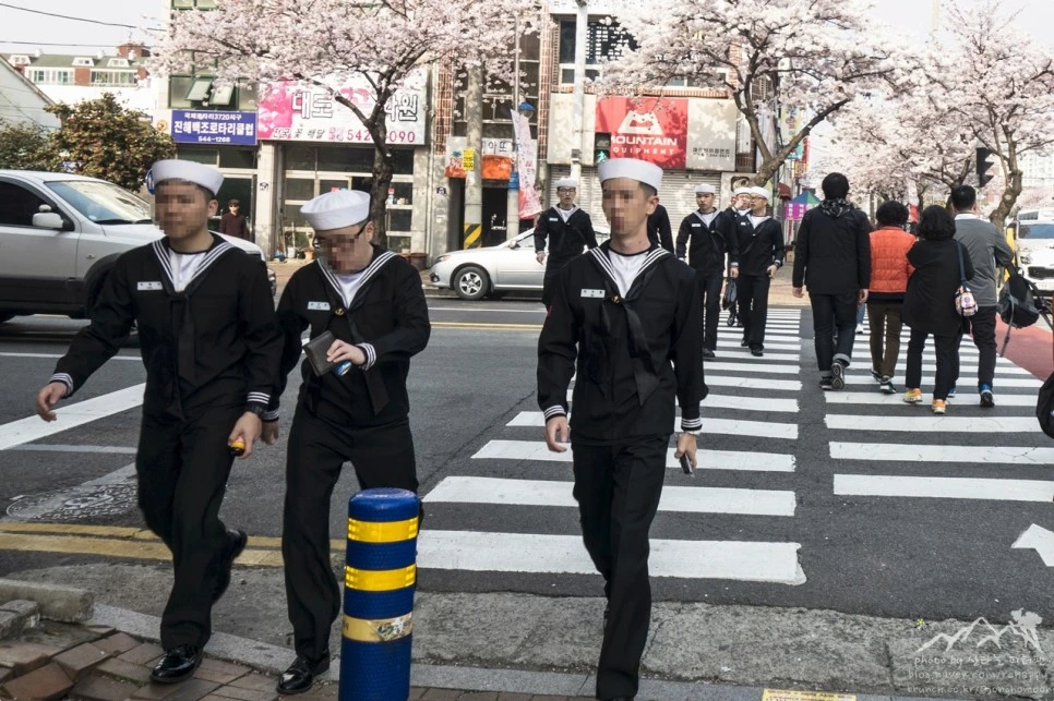진해에 왔다고 거리에 해군 수병도 보이네 오~세라복!