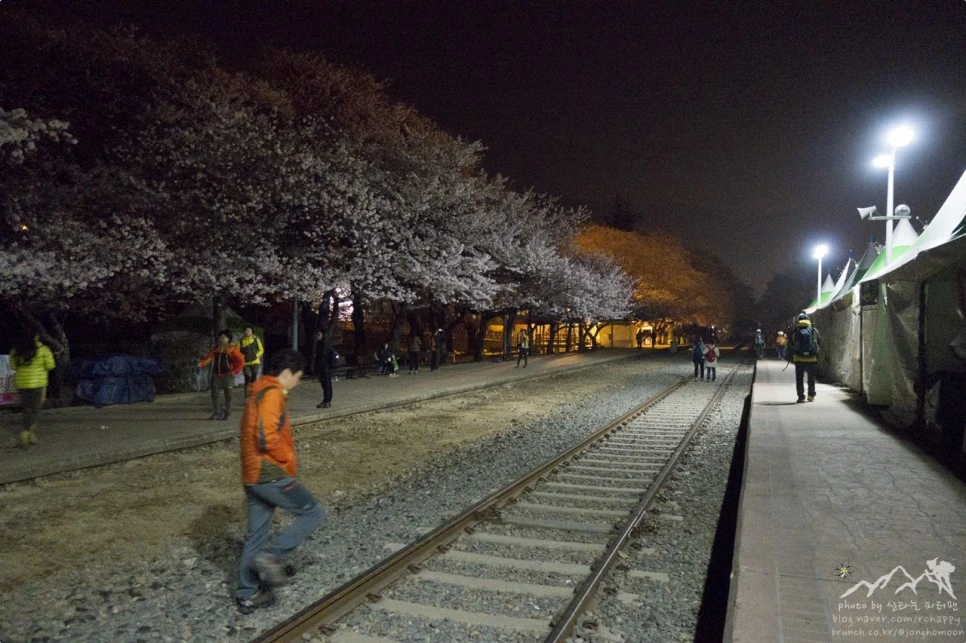 늦은밤 신사역을 출발한 버스는 새벽녘 경남 진해 경화역앞에 도착하였다, 한시간 반동안 경화역 관광후 여좌천으로 이동한다고 하였는데 어둠이 깔린 경화역은 늦은밤까지 축제로 떠들썩 했었는지 거리는 쓰레기만 뒹굴뿐, 상인들조차 모두 잠든 아침이라 편의점 이외에 모든 상점들이 안열었고 상가들도 없이 휑하였다. 춥고 배도 고픈데 그 흔한 24시 해장국집 하나도 없었다.