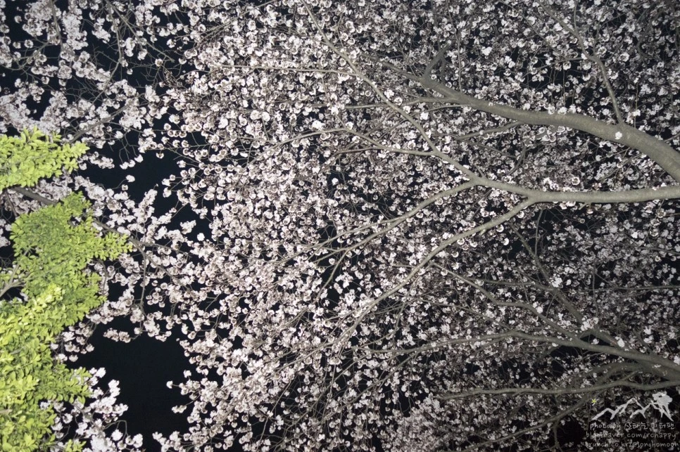 우산 부분은 요 자리가 포인트가 아닐까 생각됨! 야경에 시시각각으로 변하는 조명 빛에 벚나무에 반사되는 조명 빛이 무척 이쁘더라는 ㅠㅠ