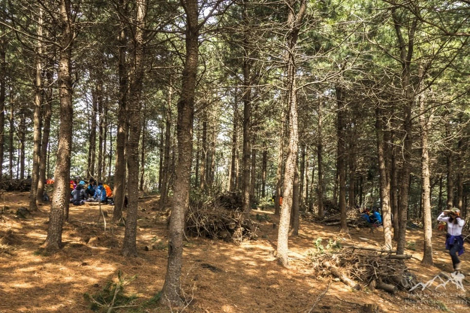 내려가는 길은 소나무가 크게 군락지를 이루고 있어서 그늘에서 쉬기도 좋고 점심자리도 지천에 널렸다.. 솔내음 솔솔 맡으며~