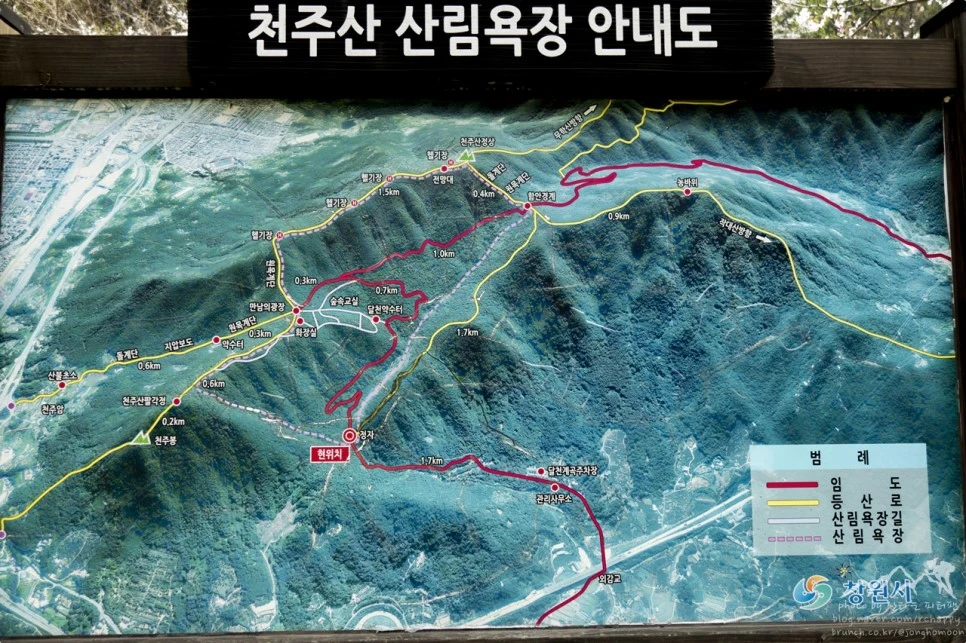 버스를 타고 천주산 약수터 아래 주차장으로 이동했다, 여좌동에서 한시간 가량 걸렸다.