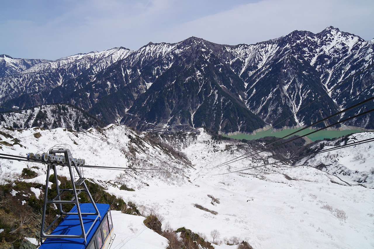 무로도에서 다시 터널을 지나가는 트롤리버스를 타고, 루프 웨이를 타고 구로베댐을 향해 간다.