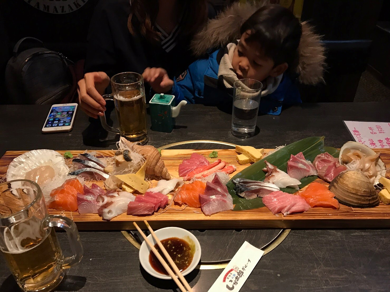 어렵게 찾은 가게에서 3만 원짜리 모둠 메뉴를 시켜놓고 첫날의 밤을 보내본다.