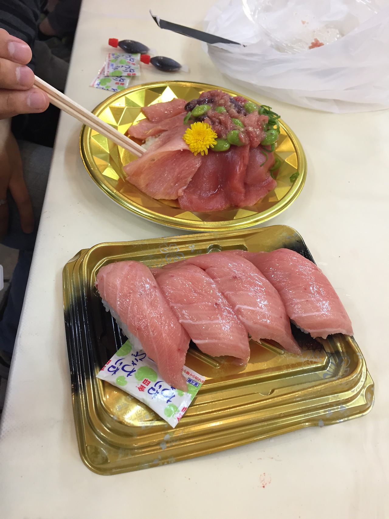 참치덮밥과, 초밥 한 개씩 일단 샀다.