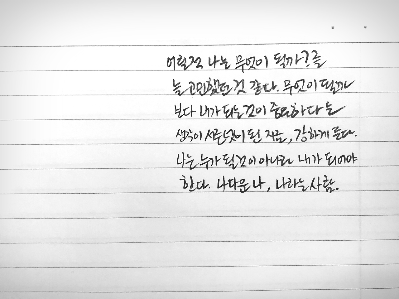 살다보니 누군가가 되고 싶다며 살아 왔더라. 내가 되려는 생각보다. 나로 살아야겠다. 나를 위해서.