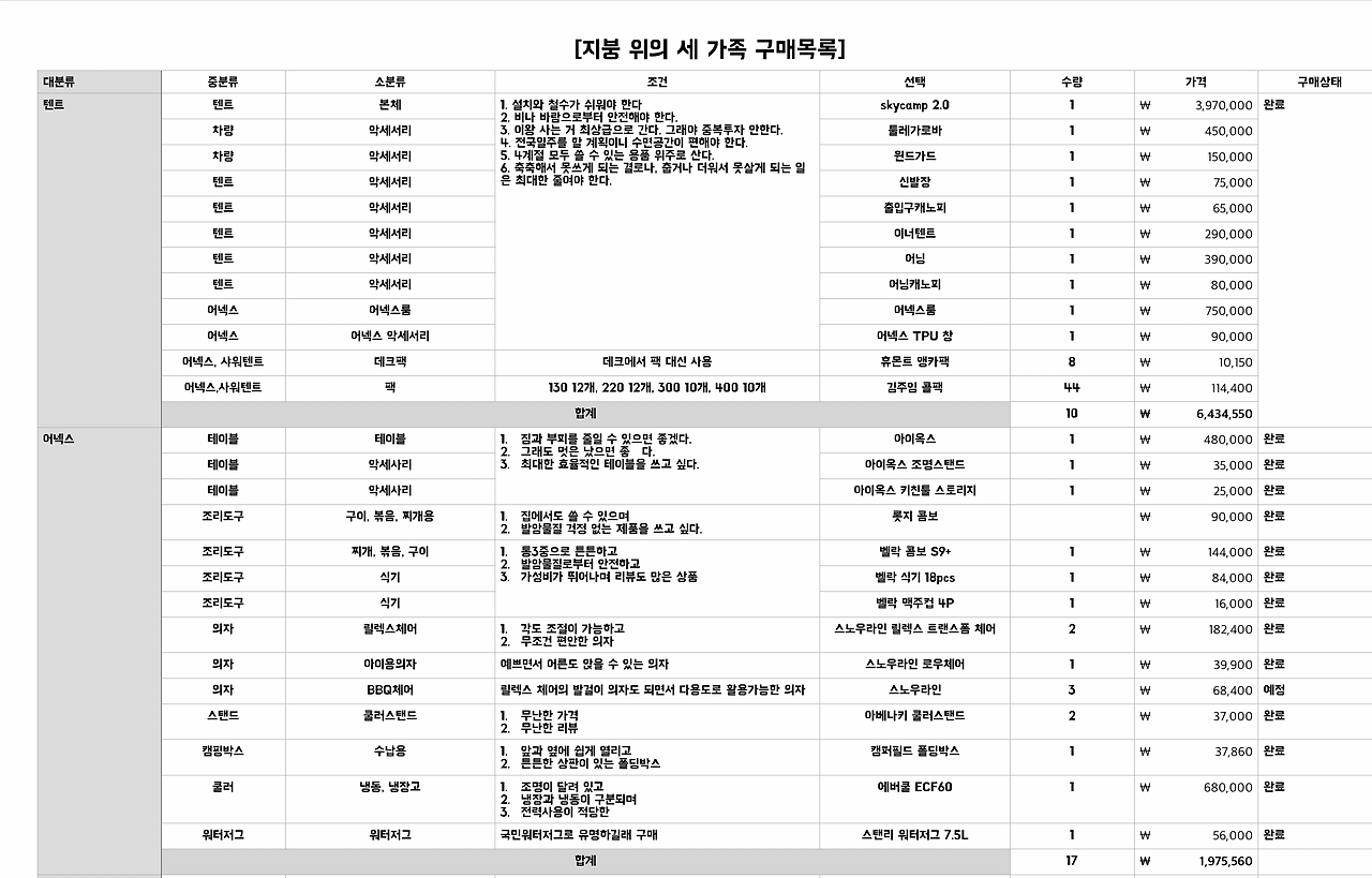 루프탑텐트 전국일주를 위한 구매리스트(최종).jpg