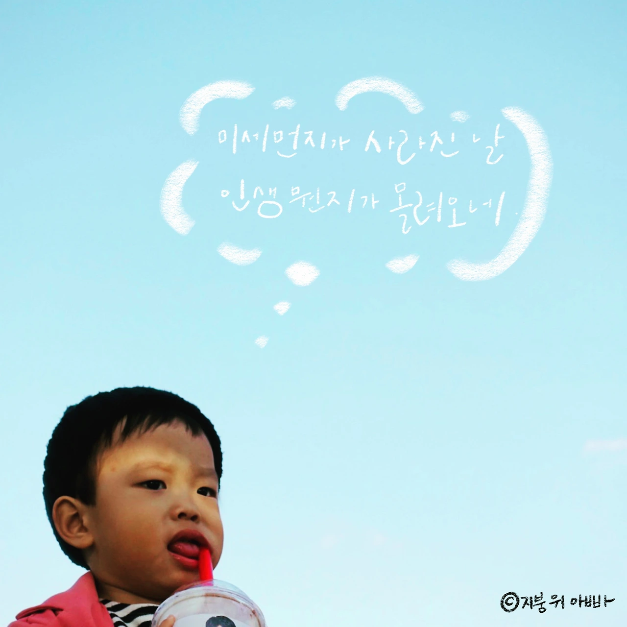 미세먼지가 사라진 날,인생 뭔지가 몰려오네.일상이 먼지인생이 뭔지.주말에 캠핑이나 가요. 아빠~