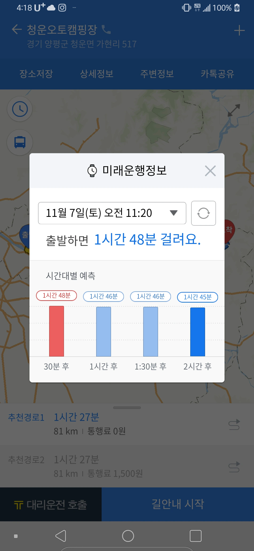60킬로미터 남짓한 거리. 예상 소요시간 1시간 30분.