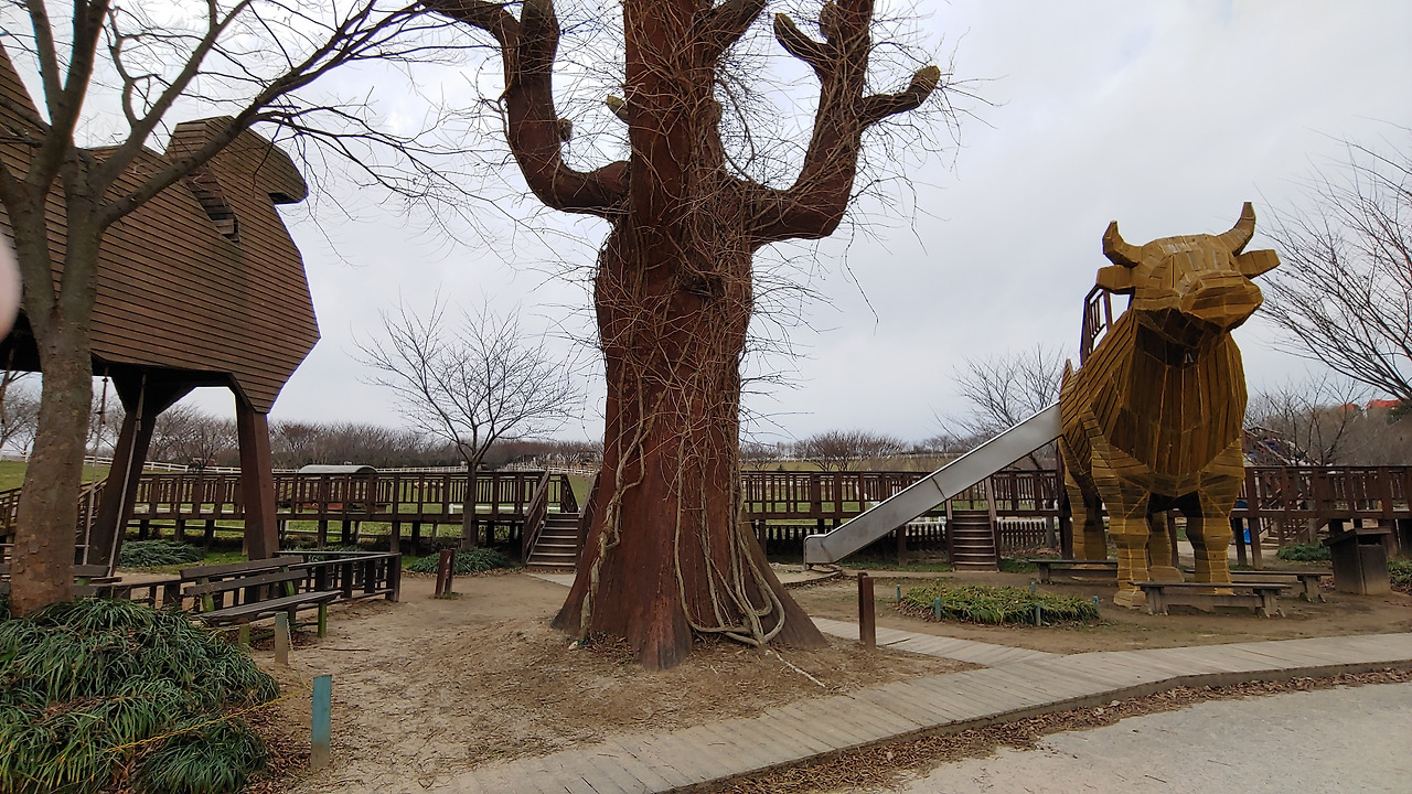 오전 11시부터 오후 4시까지, 아그로랜드 정문 쪽에서 매 정시마다 트랙터기차가 돕니다. 정차지는 따로 없습니다. 한 바퀴 도신 후 걸어서 한 곳 한 곳 가보면 됩니다. 모든 구역이 제대로 터를 잡고 있습니다. 소목장, 양떼목장, 핑크뮬리목장, 웨딩가든, 코스모스 꽃밭, 나무놀이터 등 모든 장소가 알찹니다. 모든 구역이 따로 돈을 받고 운영해도 될만큼 규모와 만듦새 모두 훌륭하게 만들어져 있습니다.