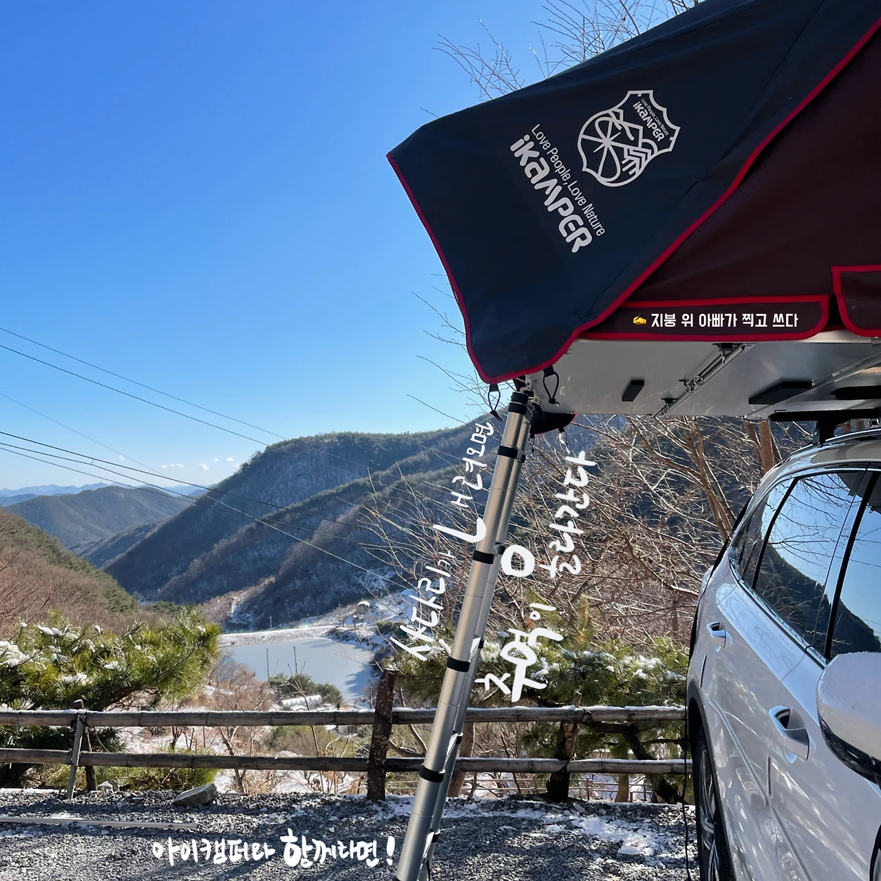 아이캠퍼를 펴기 위해 사다리가 내려오면 추억이 올라갈 길이 열립니다. 편하게 캠핑할 수 있는 날이 그립네요.