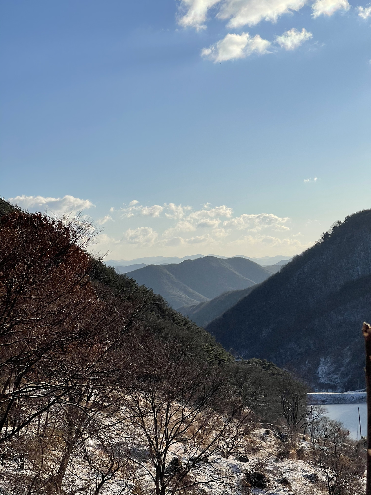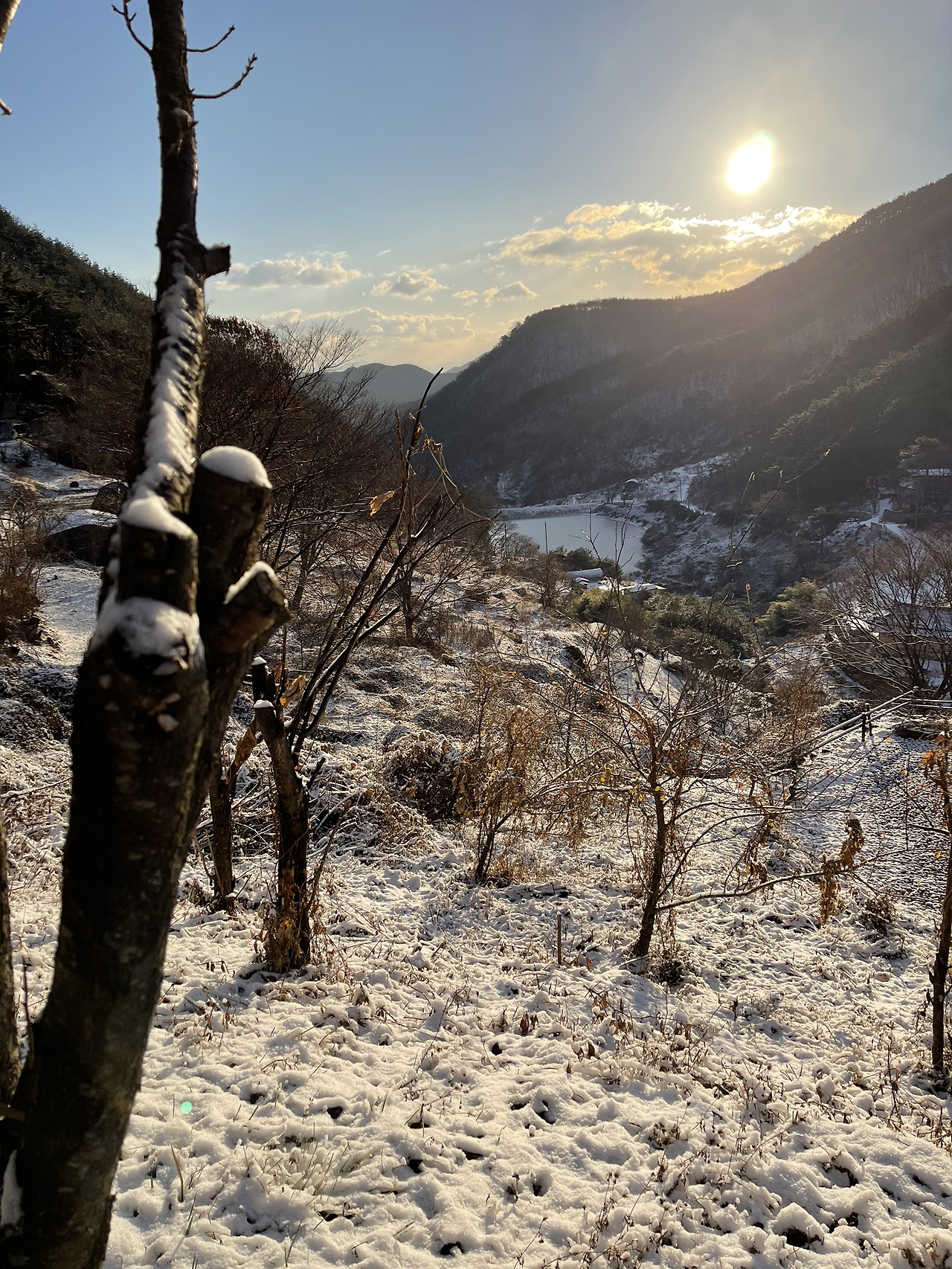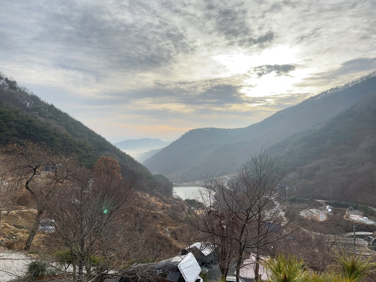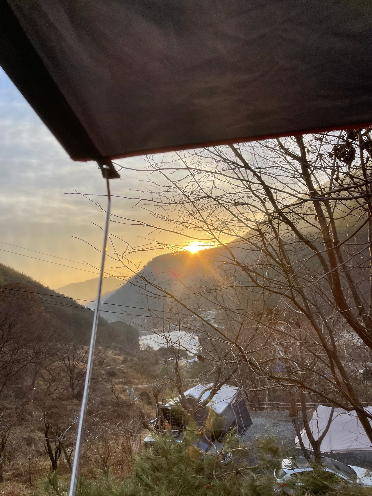 매점은 자주 닫혀 있습니다. 물, 술, 장작, 부탄, 라면, 햇반, 아이스크림, 커피 등 필요한 제품은 거의 다 있었습니다. 다만, 현금 결제만 가능합니다. 사장님이 자주 자리를 비우시니 가셔서 전화하시면 올 거에요. 사실 이 캠핑장은 출입로가 가장 난관입니다. 좁습니다. 가파르고요. 그늘이 많아 눈 오면 쥐약입니다. 그래서 체인을 꼭 챙겨가세요. 저도 퇴실하는 날 눈이 와 있어서 내려가는 길에 꽤 애 먹었었습니다. 내려갈 때는 경사로 밀림방지, 4륜, 엔진브레이크로 내려가야 안전합니다. 아시죠? 그래도 용감한 자가 미인을 얻는다는 말처럼 용기로 쟁취한 뷰가 너무나 아름다웠던 캠핑장이었습니다.