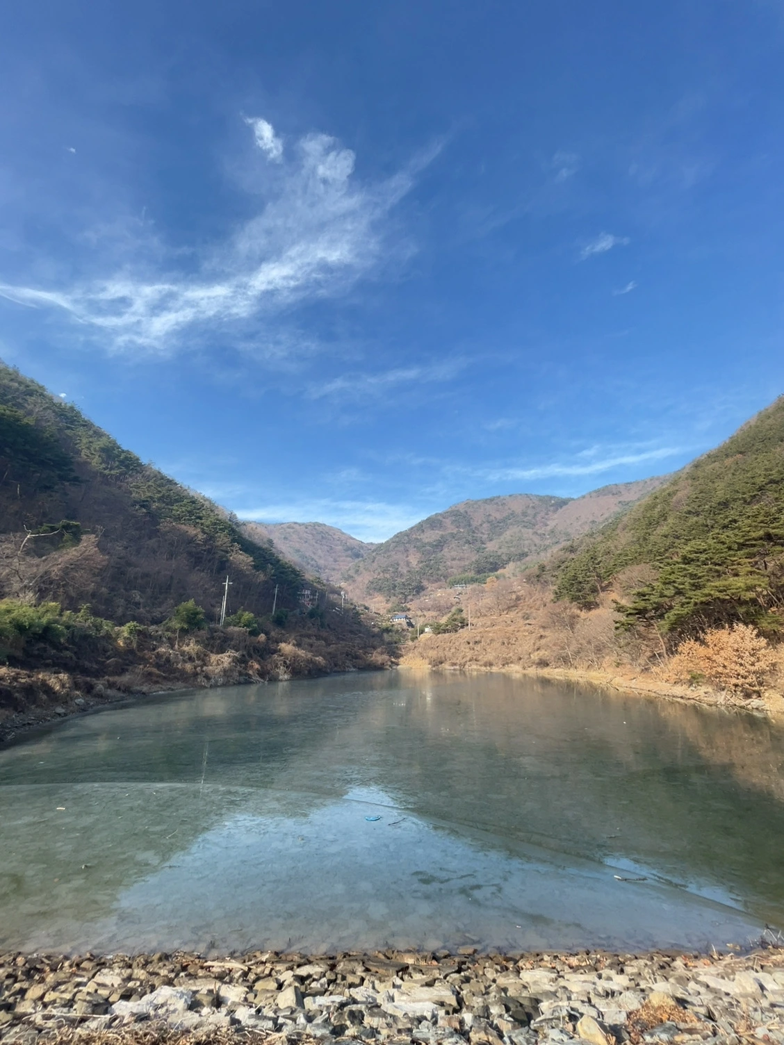 전 걷는 걸 참 좋아합니다. 그래서 캠핑장 아래 호수까지 가족들고 내려왔는데 여기 뷰도 정말 예술이더라고요. 한참을 넉놓고 바라봤습니다.